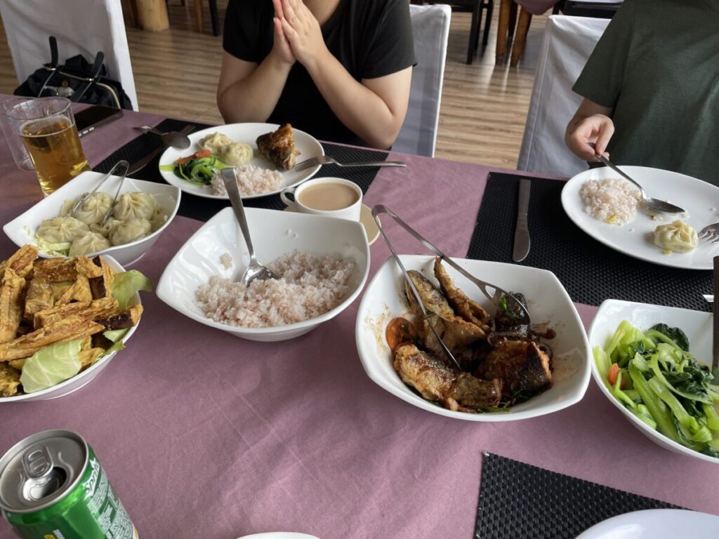ここでは珍しくお魚料理も出てきた他、モモ(餃子)もいただくことができました。