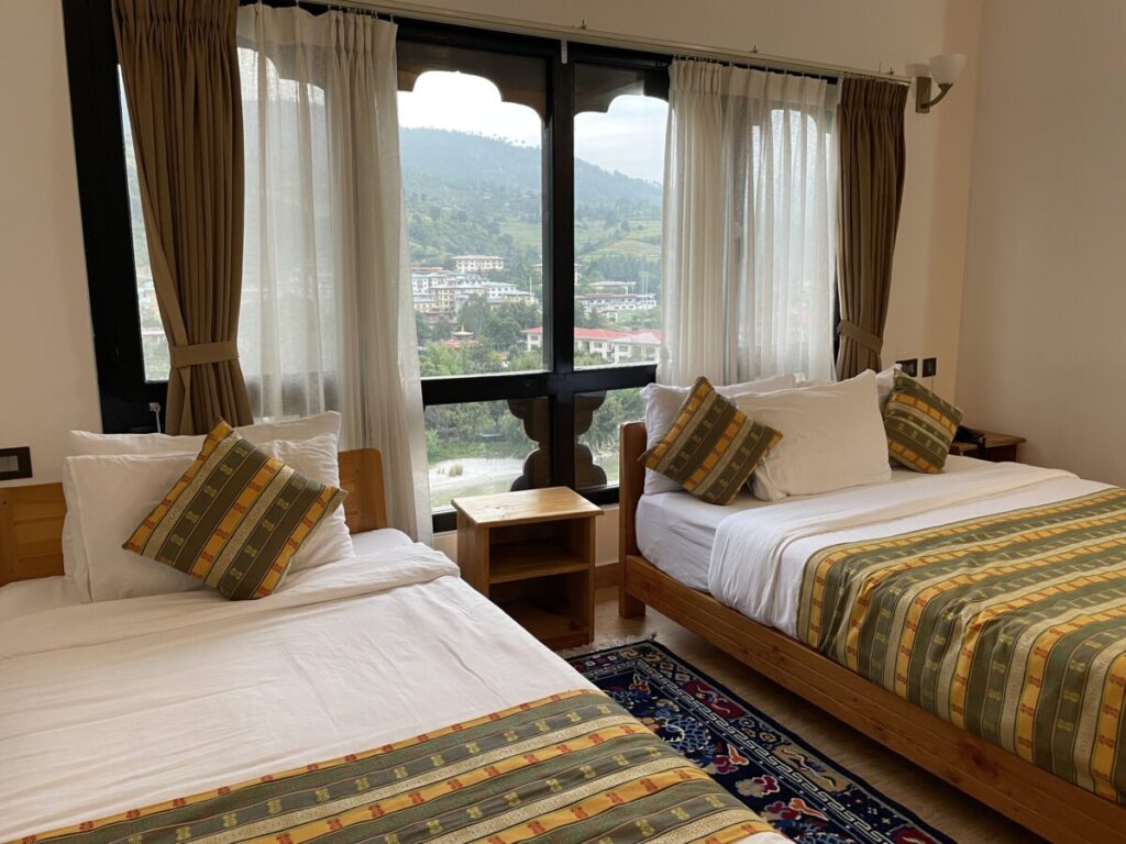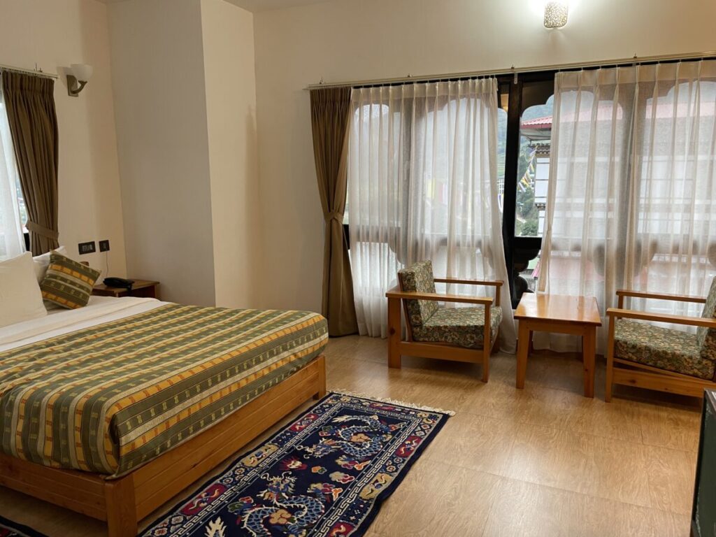 プナチョンツ川沿いにあり、お部屋の中でも、ロビーでも、バルコニーでも、どこからでも美しい景色を望むことができ、心癒されました。