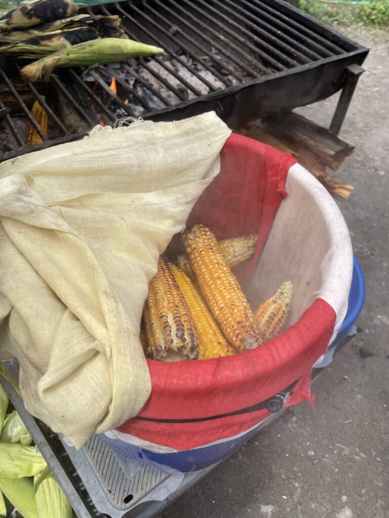 途中休憩では、焼きとうもろこしを食べたり、野生のドゥクラングールに遭遇できたりしました!