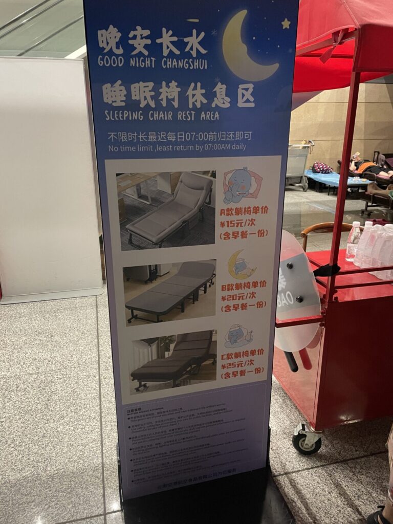 行きは昆明空港で国内線にトランジットする予定でした。空港周辺のホテルに移動するには絶妙な時間だったので、空港内に宿泊することにしました。