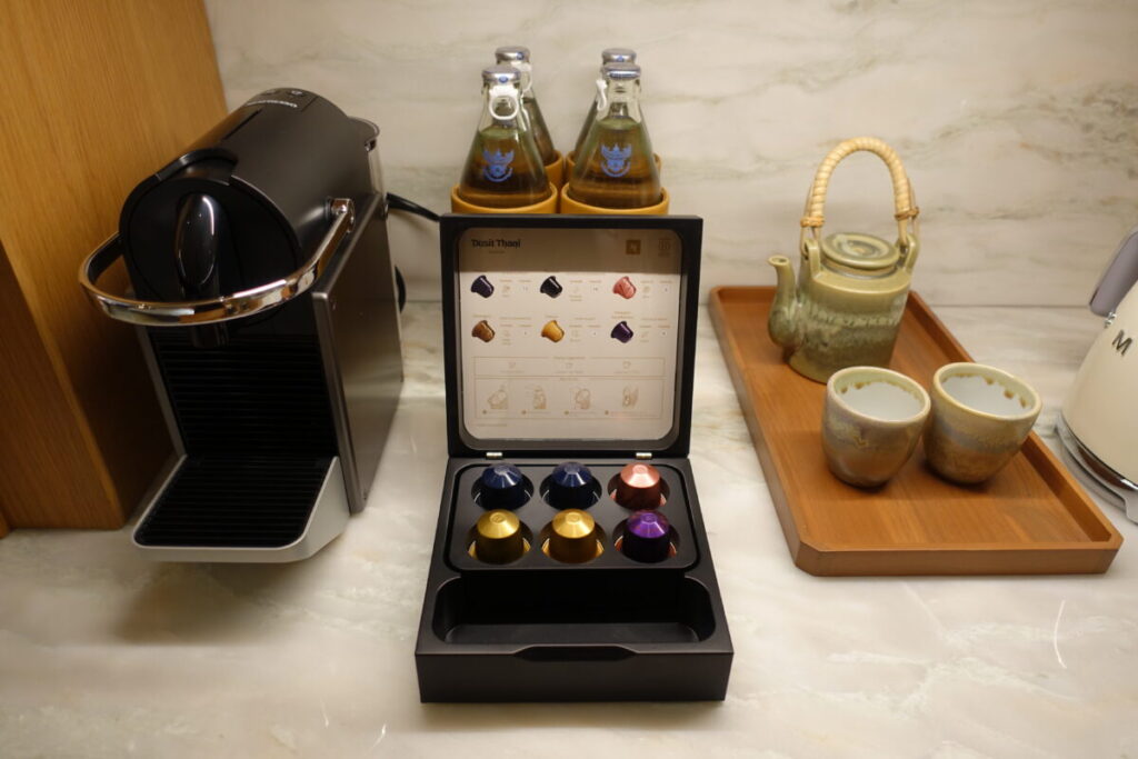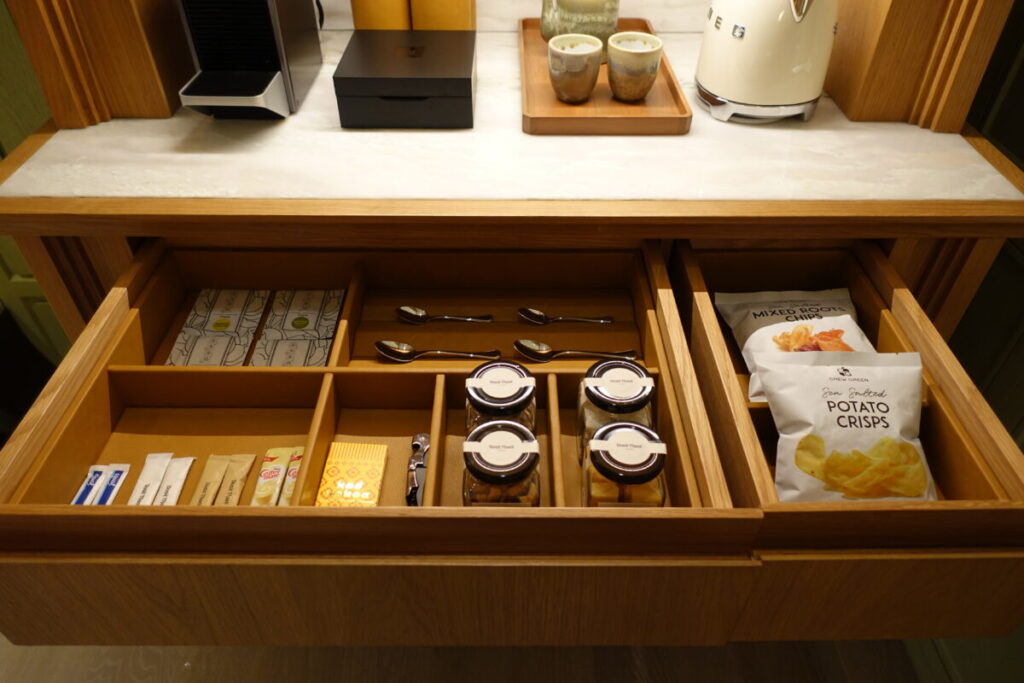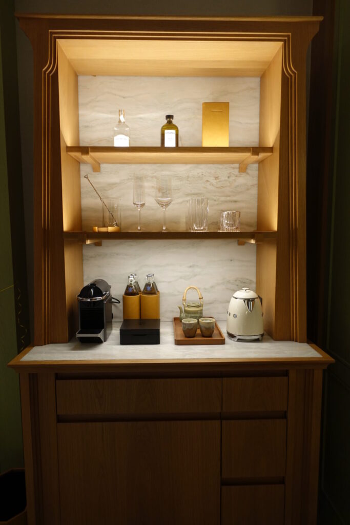 ミニバーはこんな感じ。コンプリメンタリーのティー、コーヒー、お水あり。