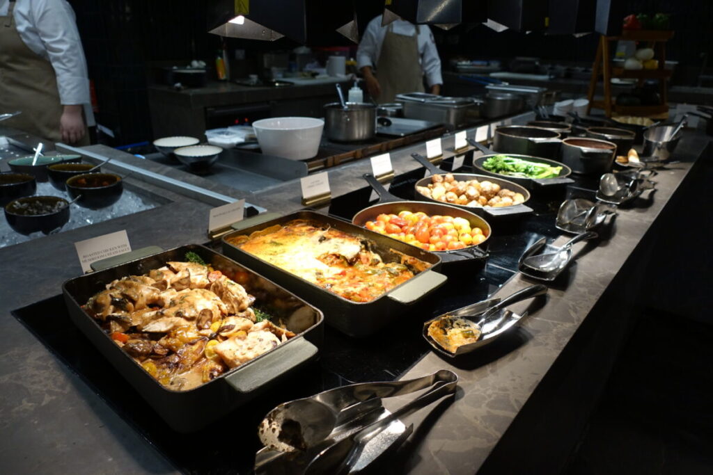 ホットミール系のブッフェは結構美味しく、ラウンジでは提供されてなかったのでここで詰め込むべしです。