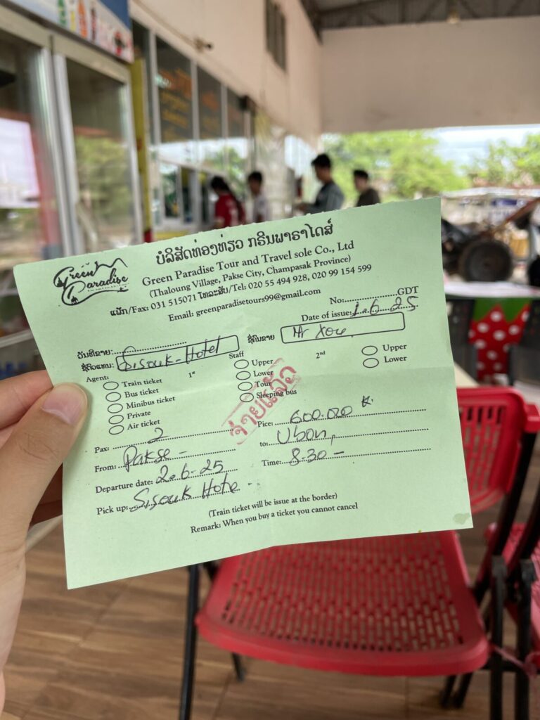 2025年6月現在、パクセー市内からウボンラチャタニへ行く国際バスは朝9:30ごろの1本のみとのこと。