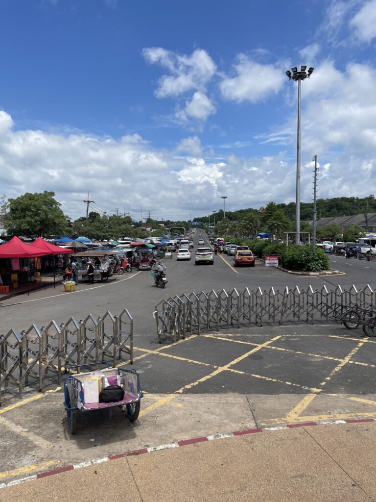 タクシーやトゥクトゥクのドライバーさんたちも待機しているようでした。ラオス地場の配車アプリLocaは使えません(2025年6月現在)。私はホテルでカーチャーターをお願いしていました。