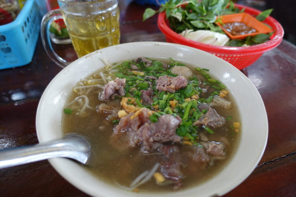 麺も新鮮で(たまに古くて臭い米粉麺があるのですが…)、スープは優しいながらもお野菜やお肉のエキスがギュッと詰まっていて、ネギやパクチーをモリモリ入れると、これまた味に厚みが出て美味い。おすすめです。