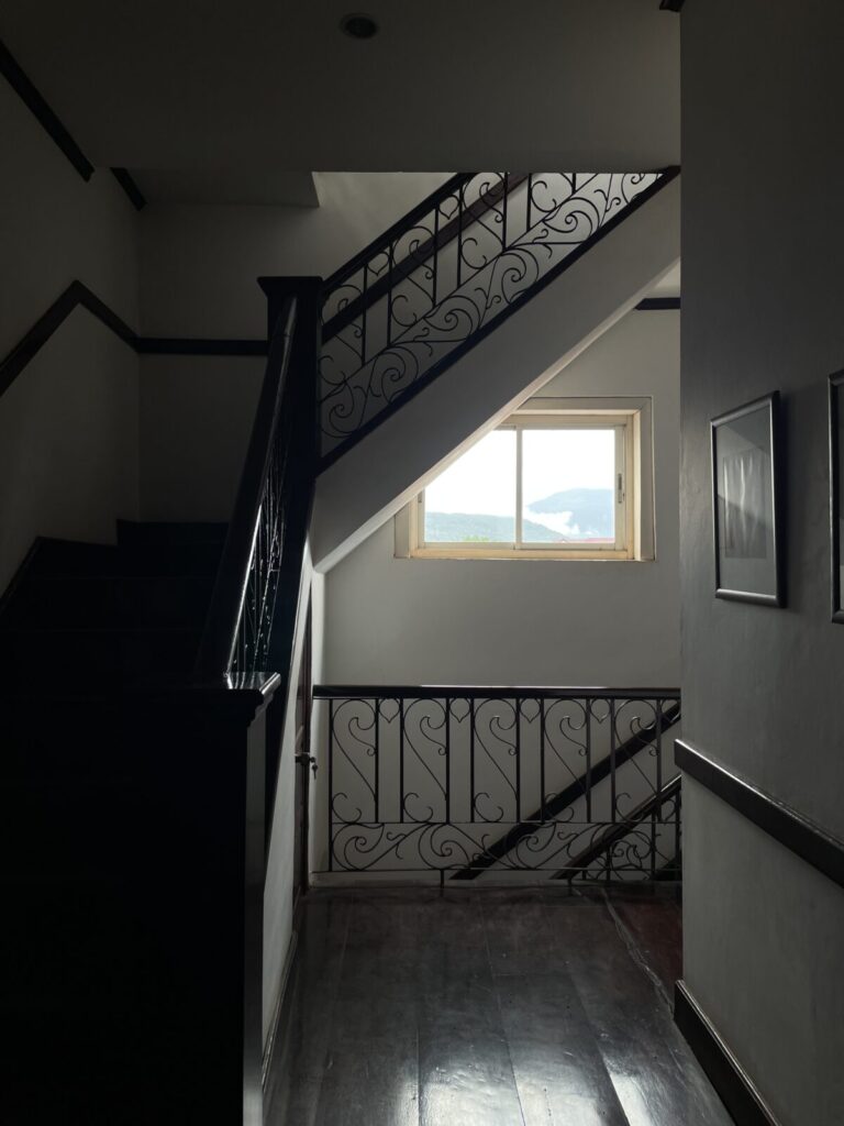 パクセーホテル&レストランの入り口から、エレベーターで上に上がり、最後は階段を登って到着です。