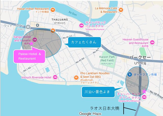 ここではまず、パクセーまでのアクセスと、パクセー市内の観光地・レストラン・カフェ・ホテルについて記録していきます。
