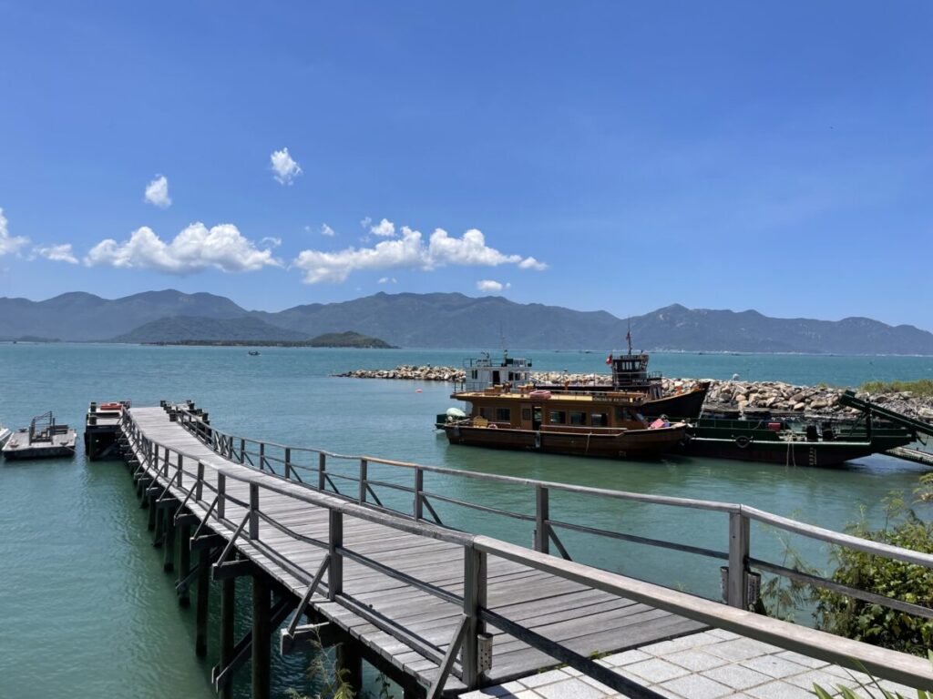 カムラン空港(ニャチャン空港)から車で約1時間でホテルのラウンジに到着し、そこから船で(たしか)20分ほどです。