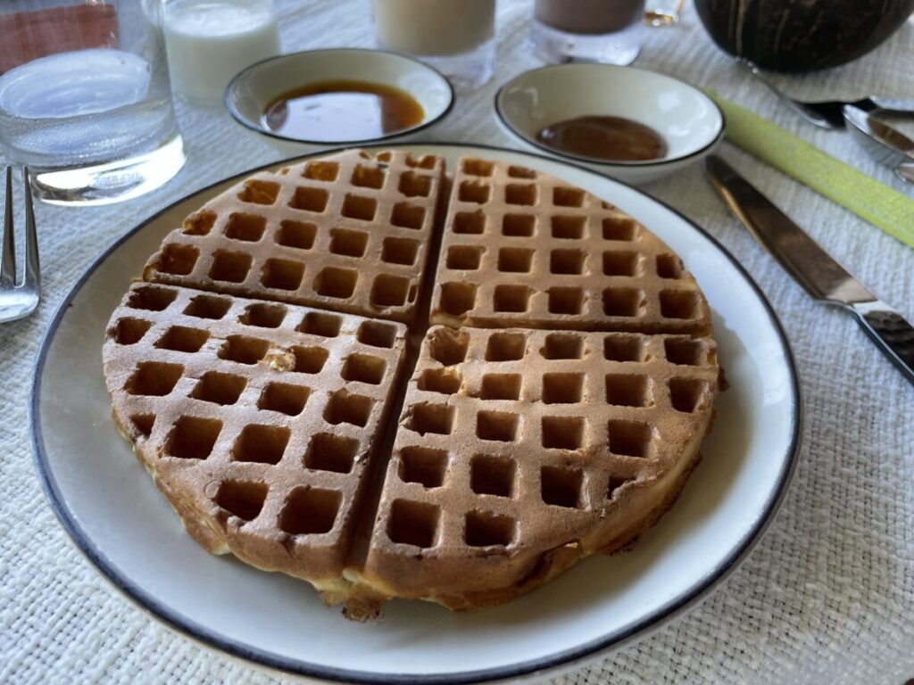 朝ごはん会場になっていたこちら。オープンエアで、海ビューで、朝からとっても開放的な気分に!