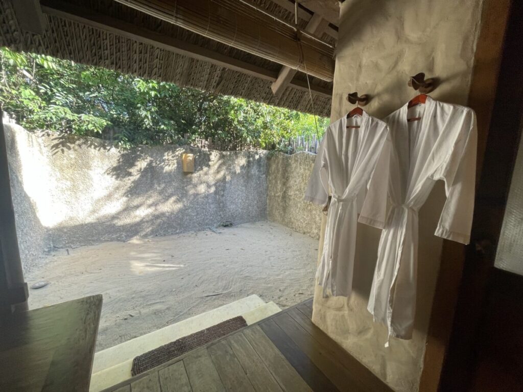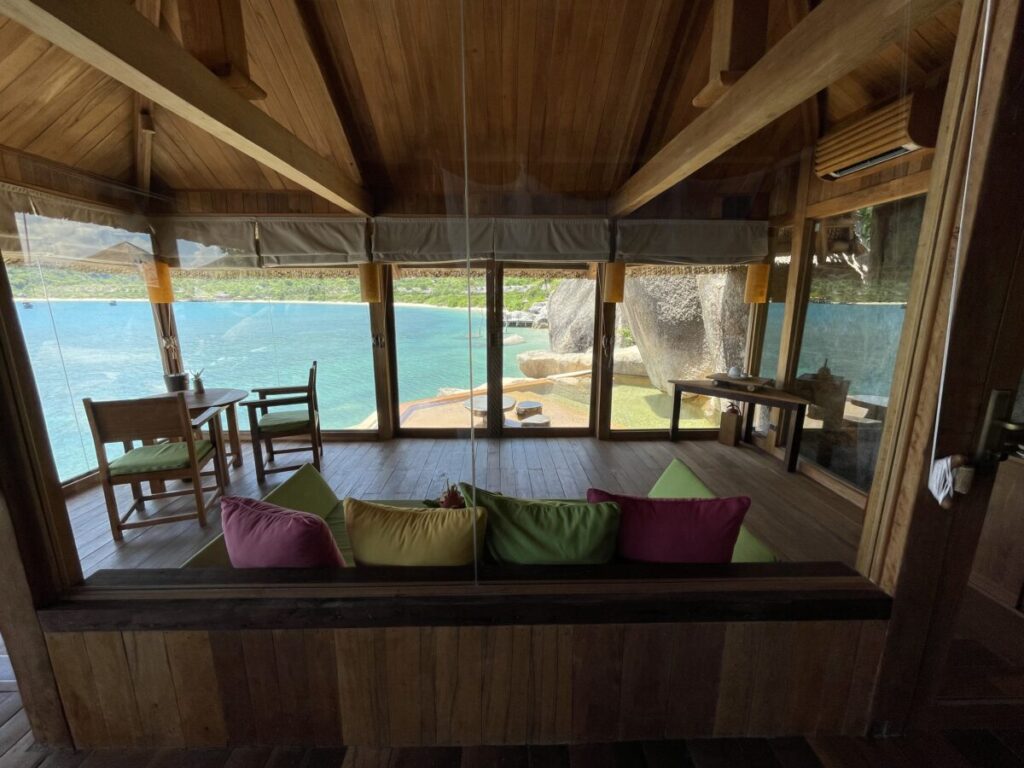 187平米で、ダイニングルーム、ベッドルーム、バスルームがある他、プライベートプールと、バルコニーがあります。そしてこのバルコニーは、なんと海に直結!海にもプールにもすぐアクセスできる贅沢空間でした。