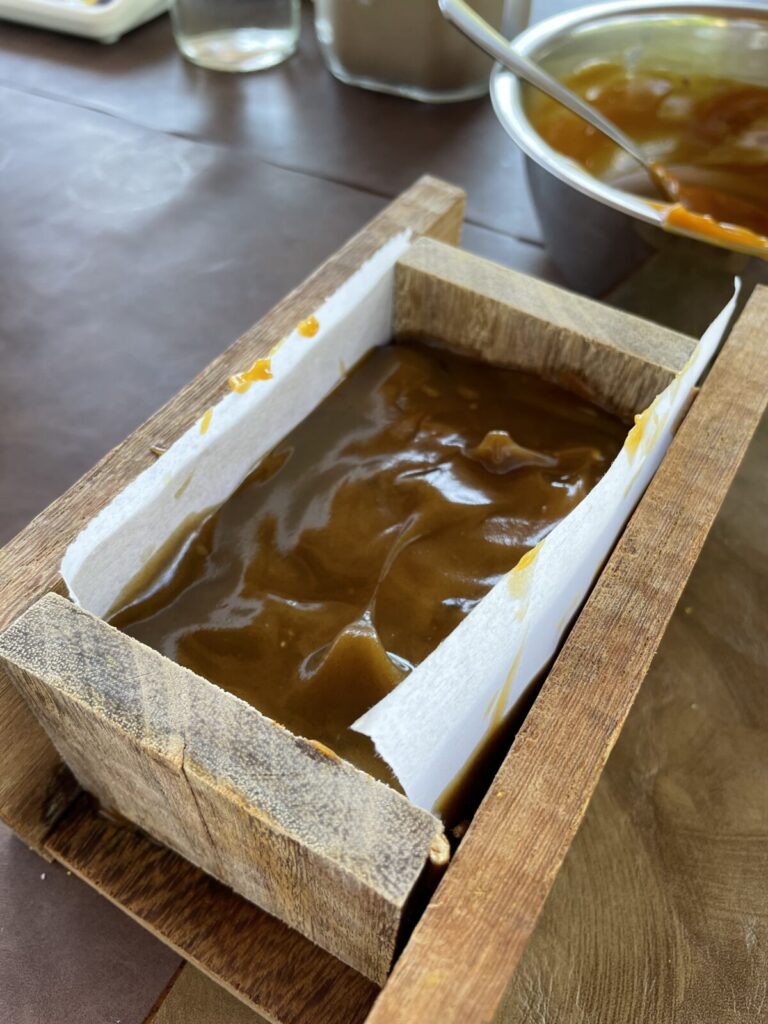 石鹸は、オーガニックな材料を混ぜ混ぜして型に入れたのち、しばし固める時間が必要です。