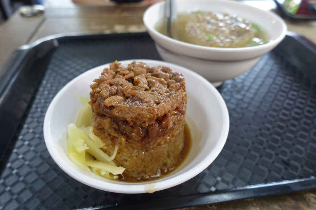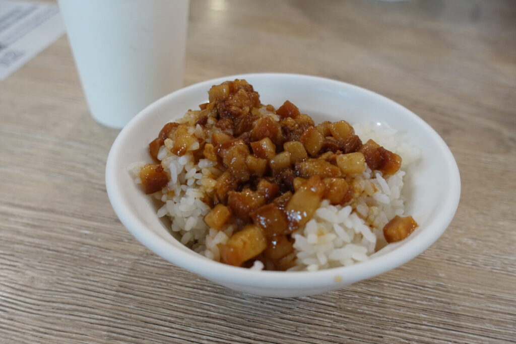 ここではルーローハンと茶碗蒸しを注文。う、うまい。ルーローハンはしみしみで、肉とご飯のバランスやしょうがのアクセントもちょうどいい。茶碗蒸しのスープには、いろんな出汁を感じられるのですが、とくに椎茸やお肉の風味が香る。1軒目で少なめにしておいてよかったああと思いました。