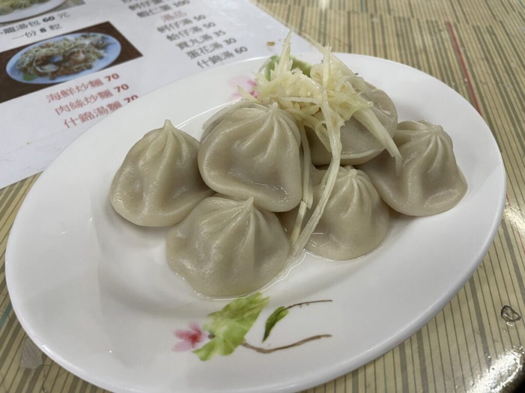 シンプルに、小籠包と空芯菜炒めをば。小籠包は皮がもちもちで、こんなに小さめで素朴な見た目ですが、中にはしっかり肉汁がつまっていました。