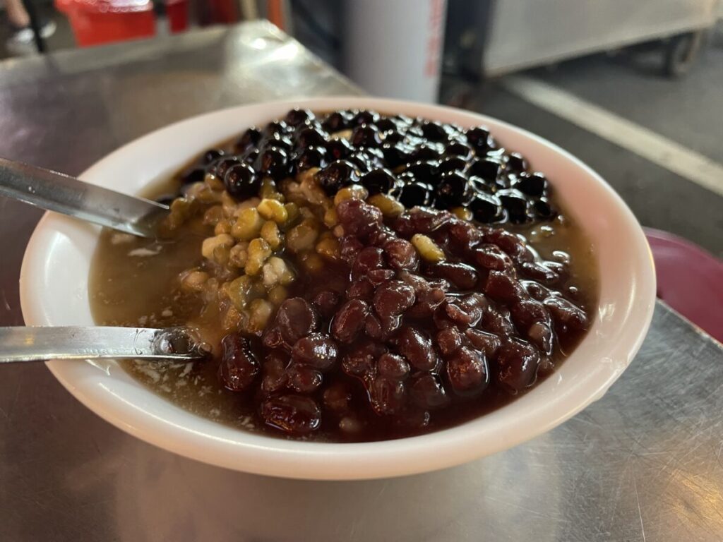 豆花は大豆を存分に感じられる素朴な味。そしてその上にこれでもか!とトッピングかけてくれます。あずき、豆、黒糖で煮たタピオカ。素朴な豆花と一緒に食べることで完成される味です。