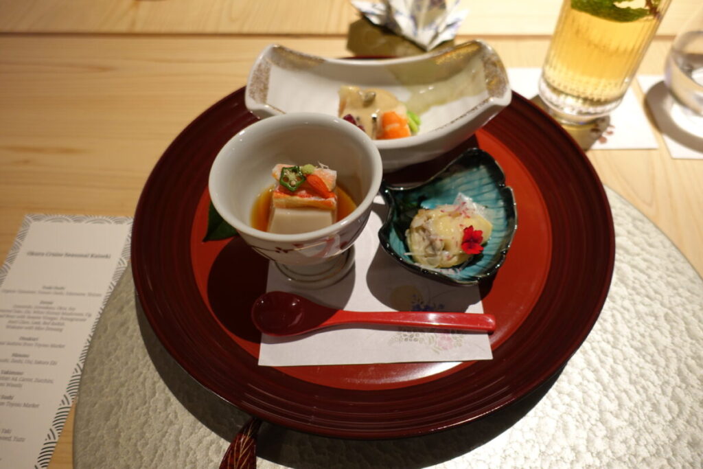 私は、シーズナル懐石コースTHB4,600++にしたので、その様子を記録していきます。