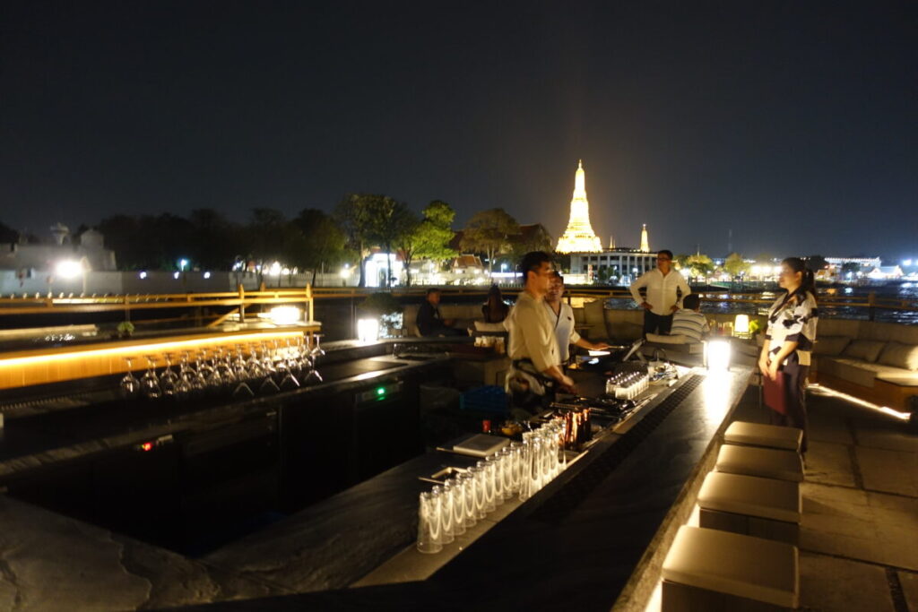 チャオプラヤ川でのクルージングは、とっても雰囲気がよく、いろんな会社がツアーを催行していますが、それらとは一線を画するラグジュアリーなクルーズでした。