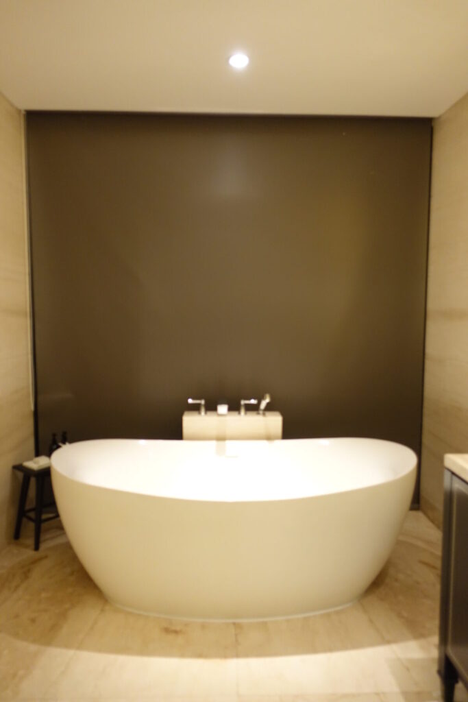 バスルームはこんな感じで、シャワーブースとバスタブもあり。