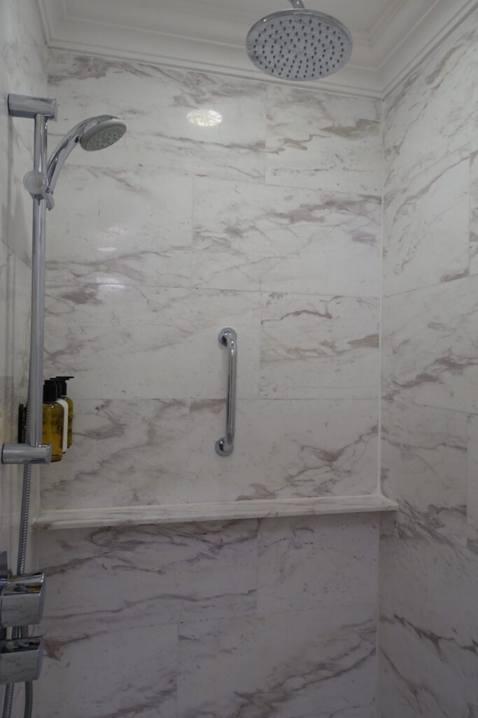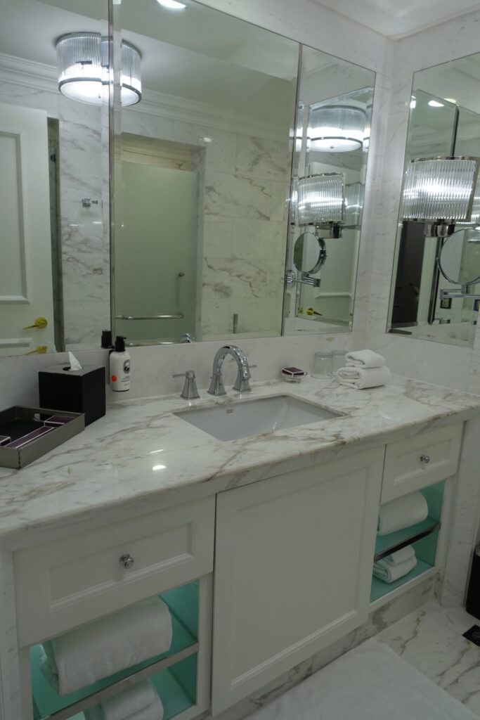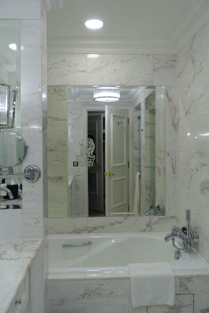バスルームはこんな感じ。大理石で明るくてよきです。シャワーブースと、バスタブもあり。