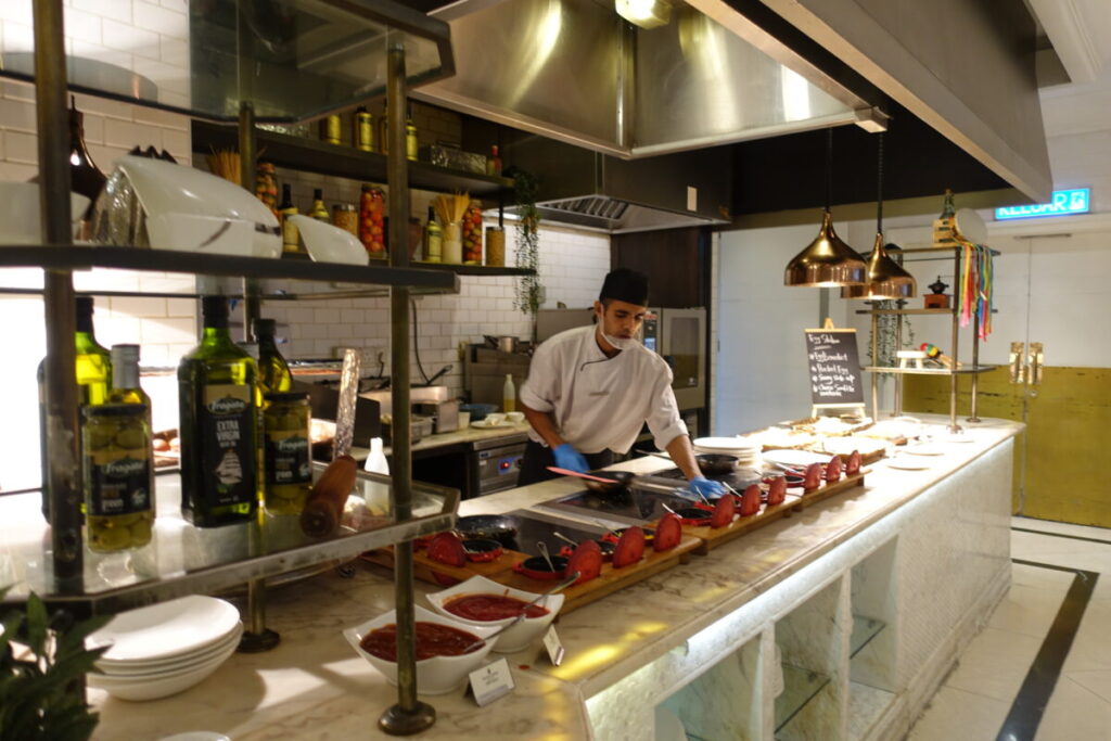 種類豊富なブッフェスタイルで、麺料理や卵料理のライブキッチンもありです。