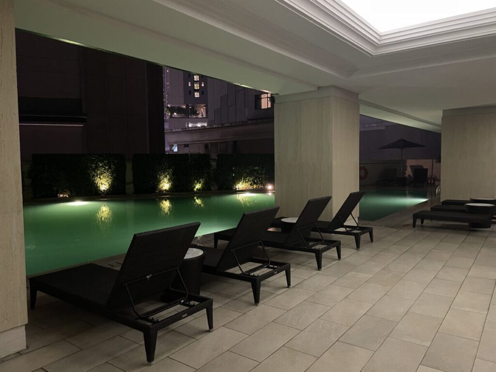 プールは4階にあり、屋外です。周りは高層ビルに囲まれており、不思議な気分でした(どんな感想?w)。数は限られていますが、プールサイドベッドもあります。あまり混み合わなくてよさそう。