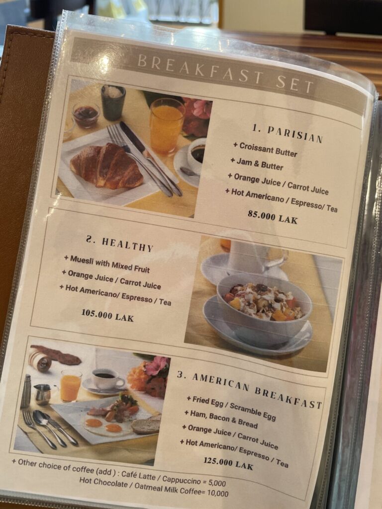 2コースのランチセットが165,000キープ(7~8$程)です。